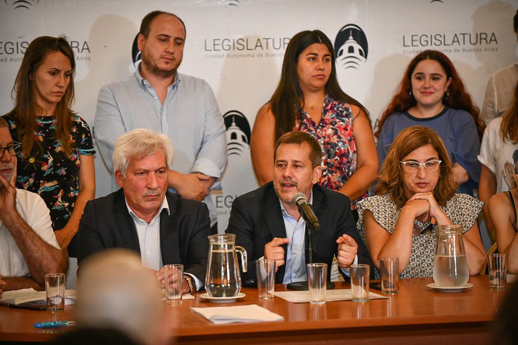 La última sesión del año en la legislatura será el próximo jueves 15 de diciembre, y el bloque del FdT hizo un fuerte llamado al resto de los espacios políticos que componen la alianza de Juntos por el Cambio para que acompañen el juicio político: “Hay fuerzas políticas que anclan en la institucionalidad, entonces queremos saber qué es lo que va a hacer la UCR en la legislatura, queremos saber qué es lo que va a hacer el espacio de Martín Losteau y Angelici. Pero también queremos saber qué es lo que van a hacer los diputados de la Coalición Cívica, que son los que hablan de constitucionalidad constantemente”, señaló el diputado porteño Javier Andrade, que al mismo tiempo interpeló: “¿Les cabe que un ministro de seguridad pueda decir que va a hacer ‘cagar’ al jefe de una fuerza de seguridad nacional? Nosotros tenemos en claro por dónde tenemos que ir, esperamos que la oposición esté a la altura de las circunstancias”.