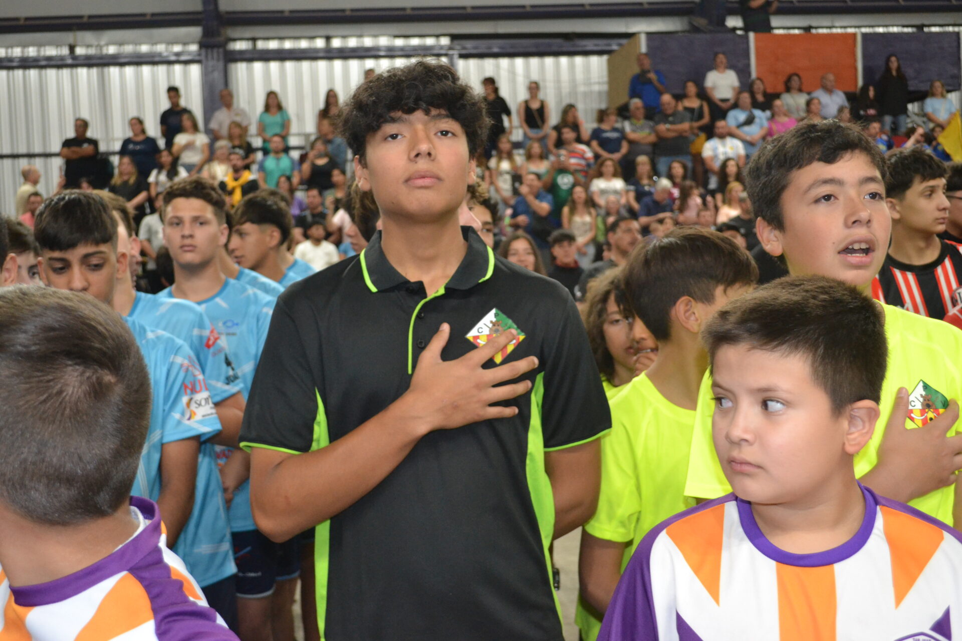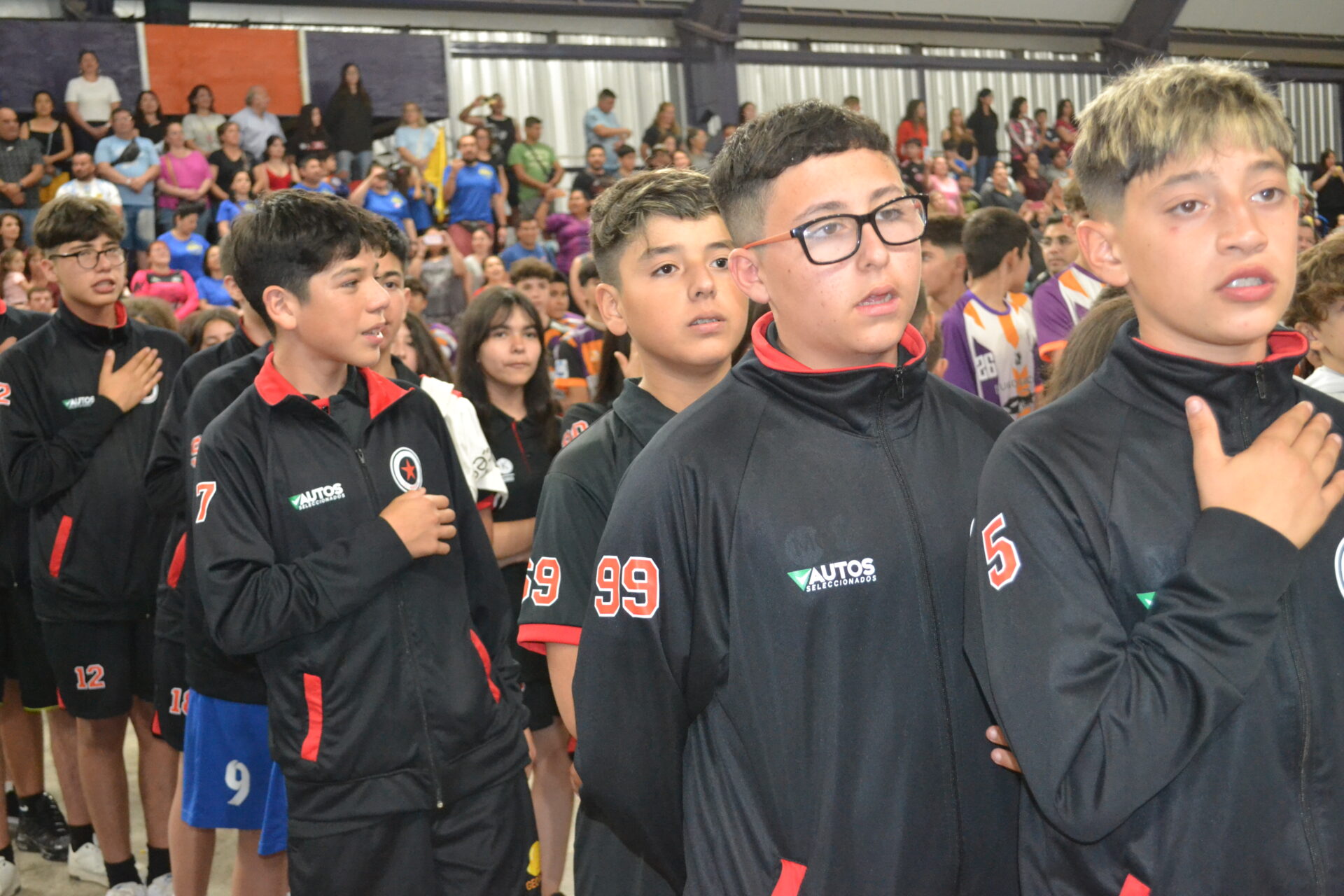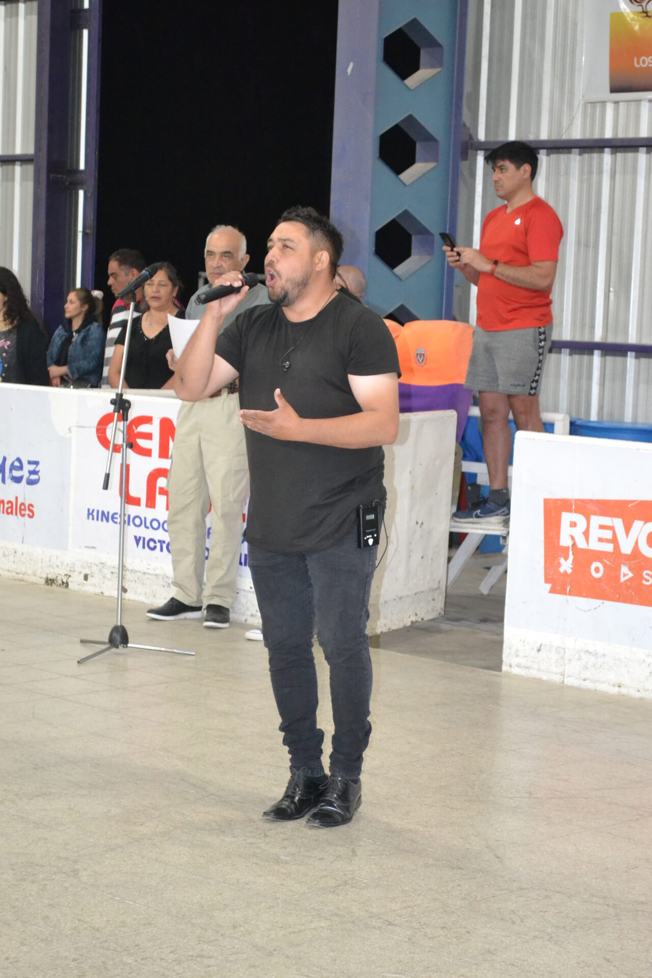 La ceremonia con cantante incluuido para entonar las estrofas del Himno Nacional Agrentino, tuvo una concurrencia que completò todas las gradas del Estadio Cerrado de las Colonias Unidas.