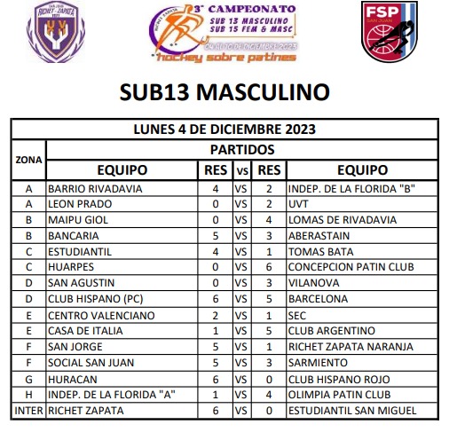 Este lunes comenzó la tercera edición del Torneo Internacional para sub 13 masculino y sub 15 femenino y masculino de hockey sobre patines que organiza Richet y Zapata en sus dos canchas del camping ubicado en Santa Lucia. Este año llegaron una decena de equipos de Chile, sumados a los mendocinos, porteños y los sanjuaninos u animan este certamen para chicas y chicos amantes del hockey sobre patines.